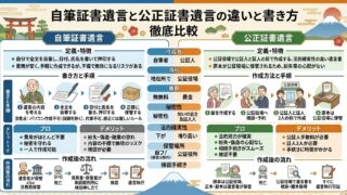 自筆証書遺言・公正証書遺言・秘密証書遺言の違いを比較表で解説。2020年開始の法務局保管制度も踏まえ、費用・検認の有無・状況別の選び方まで整理します。